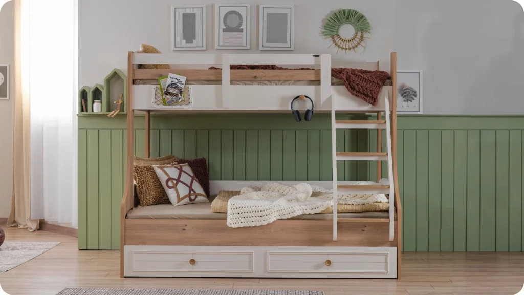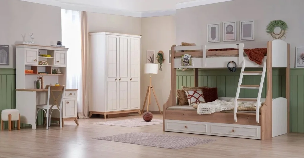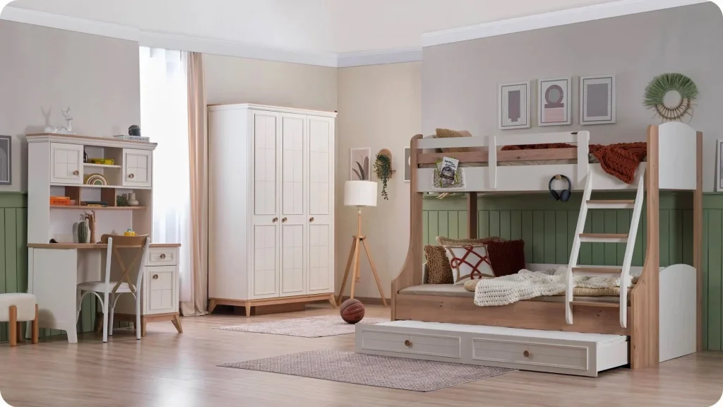Takım İçeriğiGardrop (3 Kapaklı) + Ranza + Çalışma masası (alt)