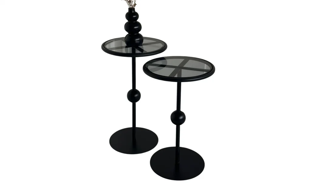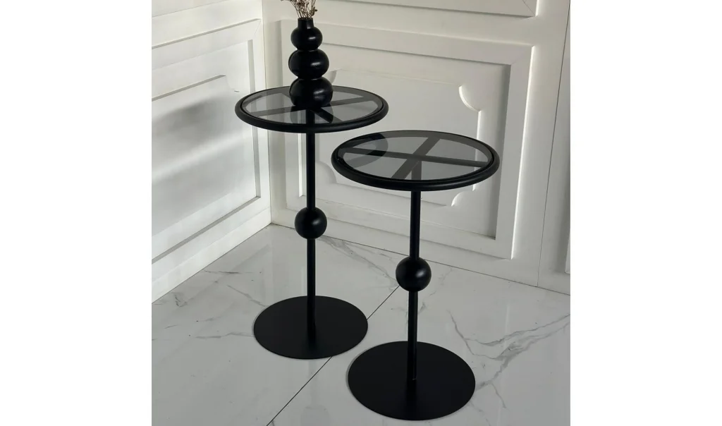 Art Siyah 2'li Zigon Sehpa - Cam Tablalı