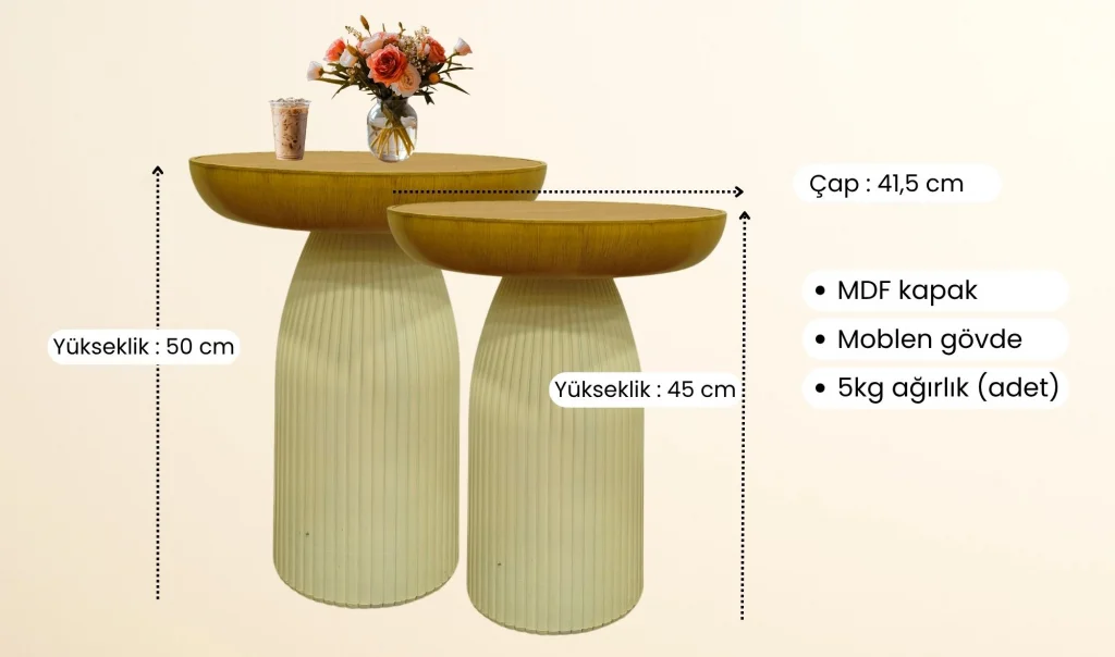 Takım İçeriği1 ad. 50x41 cm ve 1ad. 45x41 cm sehpa