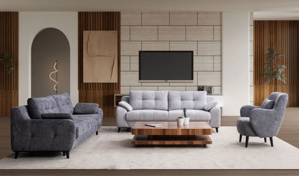 • 2 ad. 3'lü Koltuk (yataklı-sandıklı) ve 1 ad. Berjer, takım fiyatına dahildir.