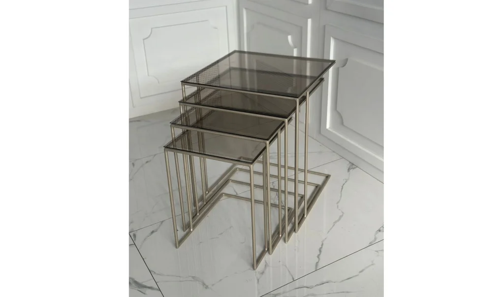 Harmony 4'lü Zigon Sehpa - Cam Tablalı