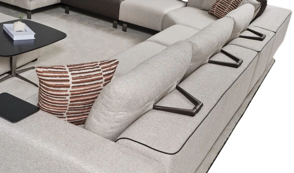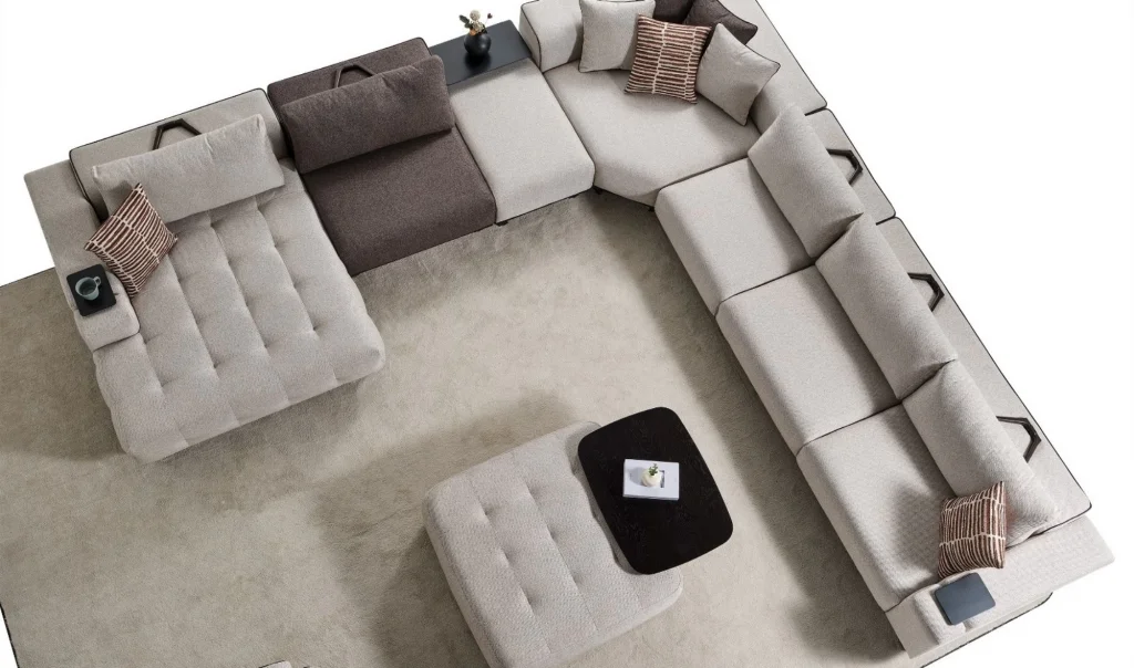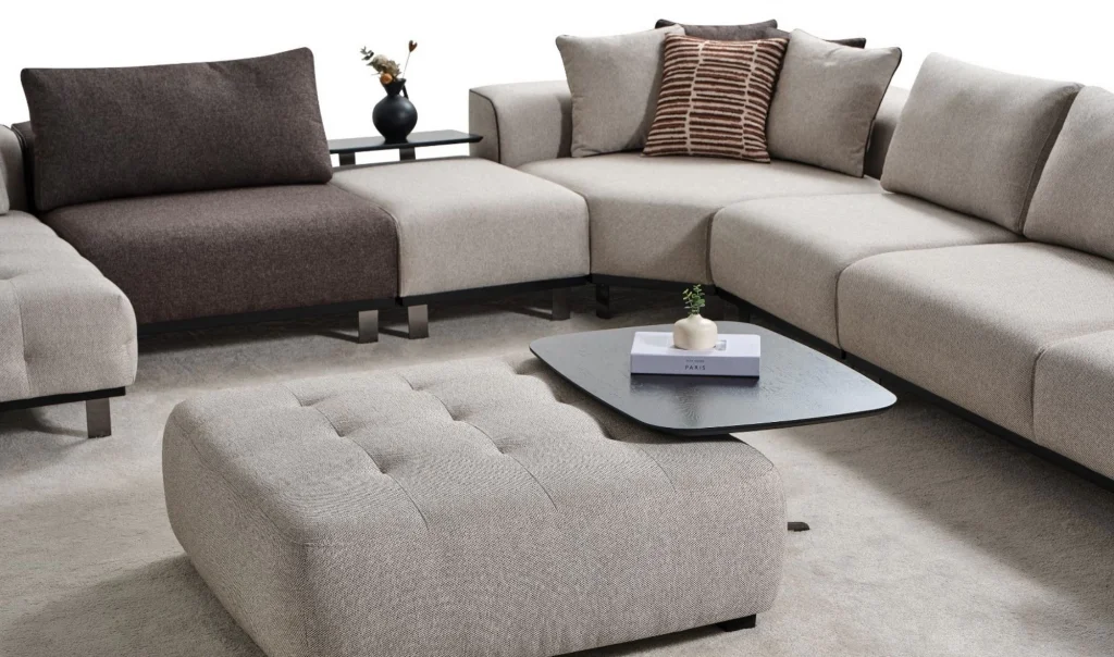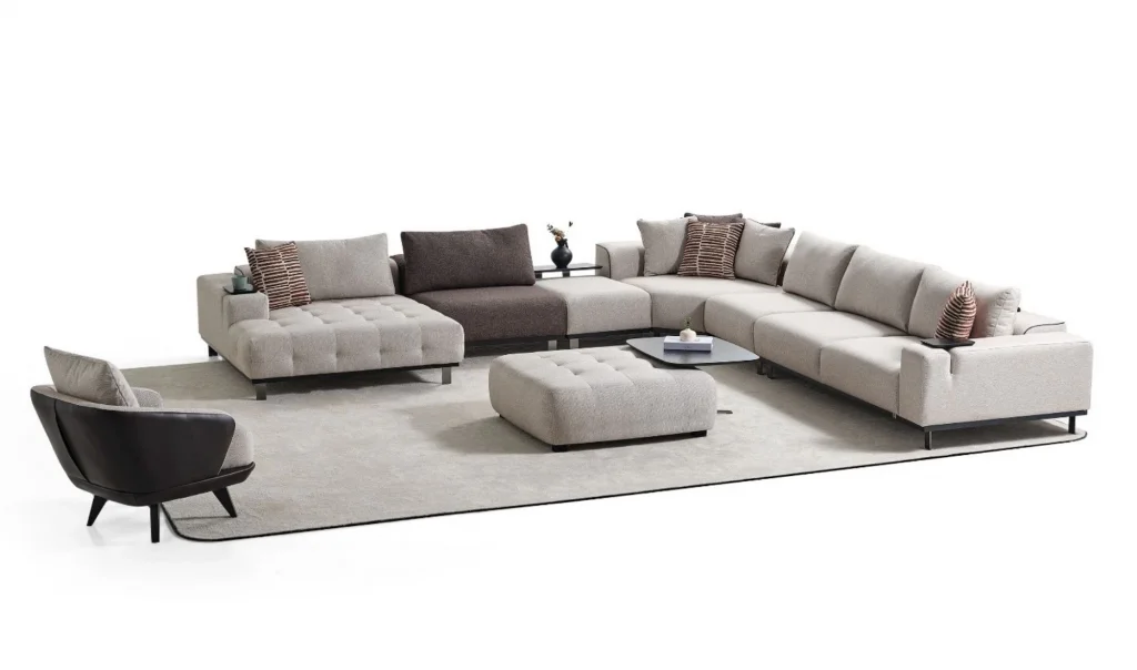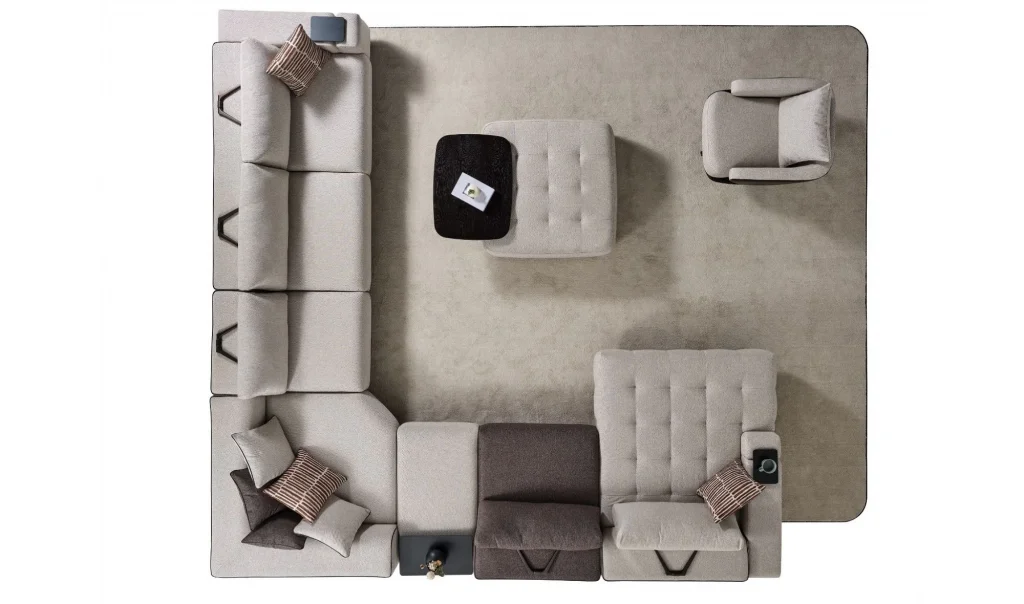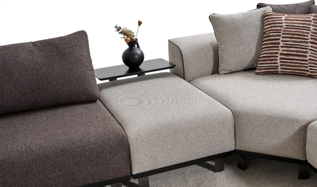Takım İçeriği1 ad. Dinlenme modülü (130x170) + 1 ad. Ara modül (90cm) + 1 ad. Sehpalı ara puf (60cm) + 1 ad. Köşe modül (130x130) + 1 ad. Ara modül (75cm) + 1 ad. Kollu modül (205cm)