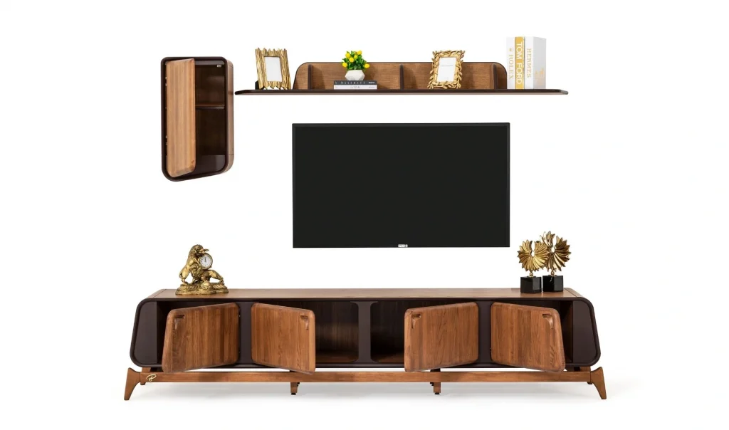 Takım İçeriği1 ad. Tv ünitesi alt modül + 1 ad. Tv ünitesi üst dolap + 1 ad. Tv ünitesi üst raf
