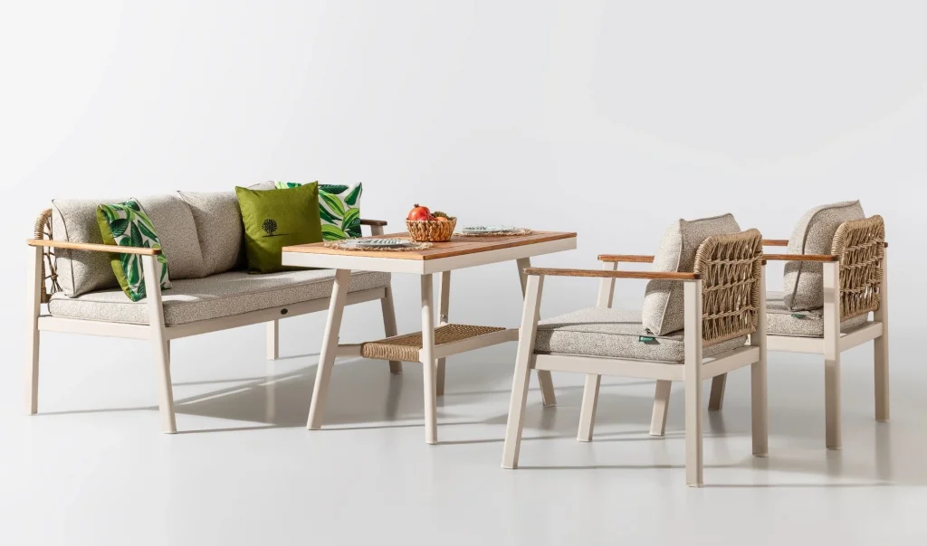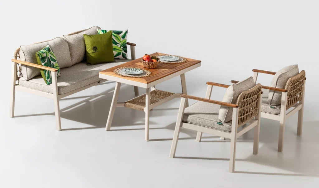 • 1 ad. 3'lü Koltuk - 2 ad. Tekli koltuk ve 1 ad. Yüksek sehpa, bahçe takımı fiyatına dahildir.