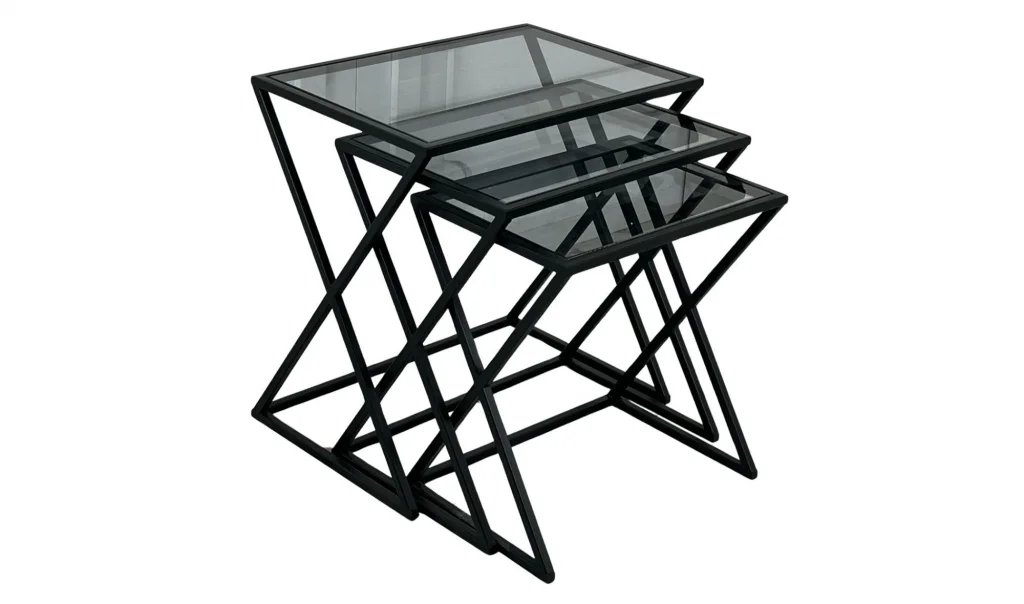 X 3'lü Siyah Zigon Sehpa - Cam Tablalı